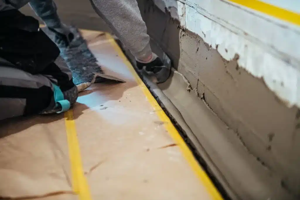 Art und Umfang der Arbeiten: 5 m Estrichrinne + Hohlkehle; 7,65 qm Sperrputz